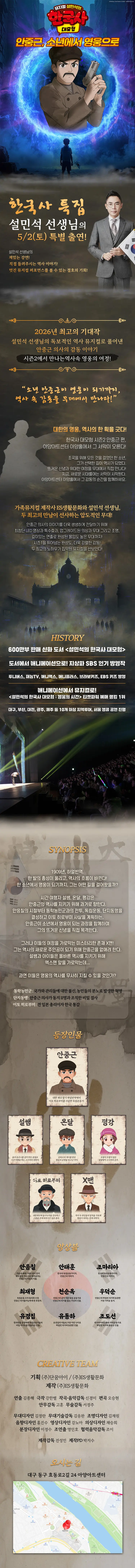 설민석의 한국사 대모험: 안중근뮤지컬5.2 ~ 5.3아양아트센터 (아양홀)골라보기공연,실내,아이와함께,예매필요