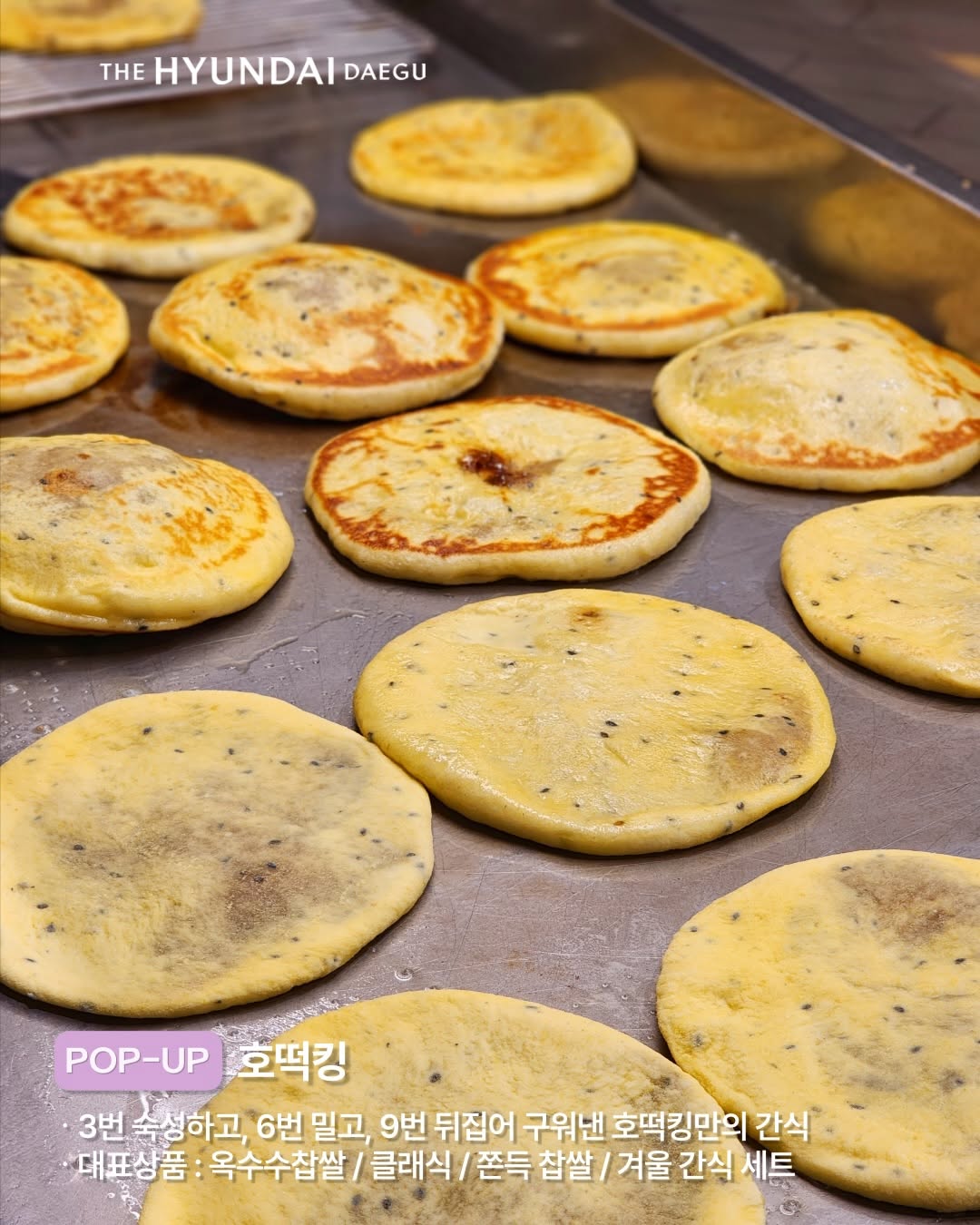 3번 숙성하고, 6번 밀고, 9번 뒤집어 구워낸 달콤한 겨울 간식, 호떡킹의 호떡을 선보입니다.